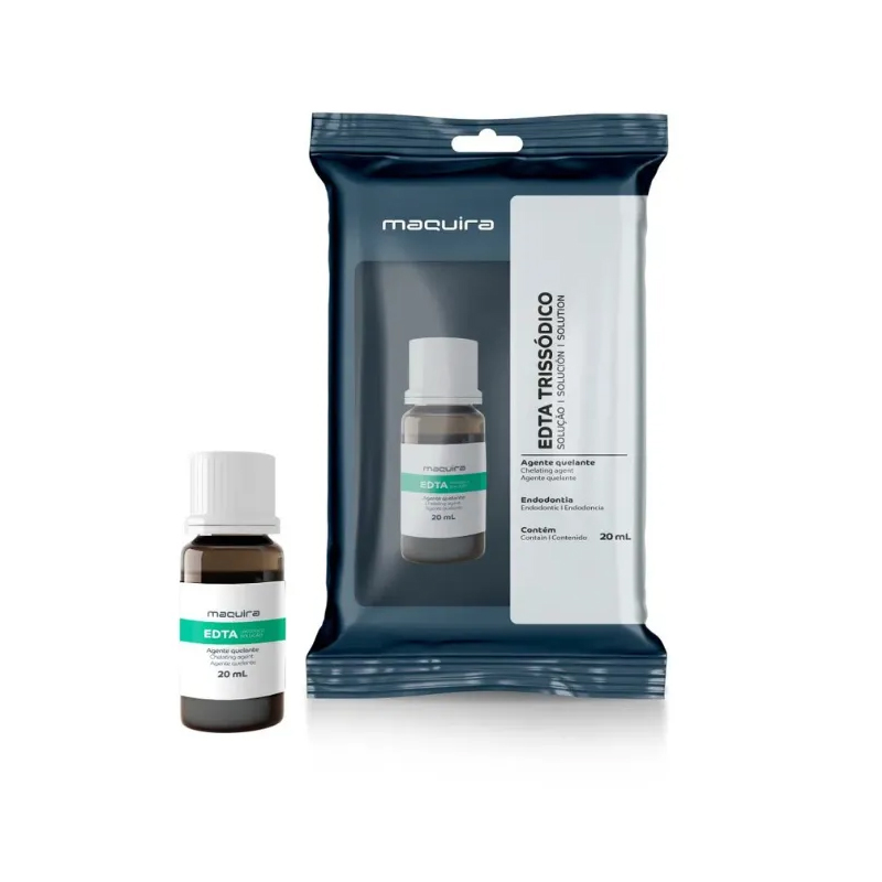 EDTA Trisodium Solution is a chelating agent designed for use in endodontic treatments. This solution effectively removes inorganic debris and the smear layer from root canals, facilitating better cleaning and disinfection. The 20 mL bottle is ideal for dental professionals, ensuring efficient and precise use during root canal therapy. This product supports better canal preparation, aiding in the success of subsequent filling and sealing procedures.