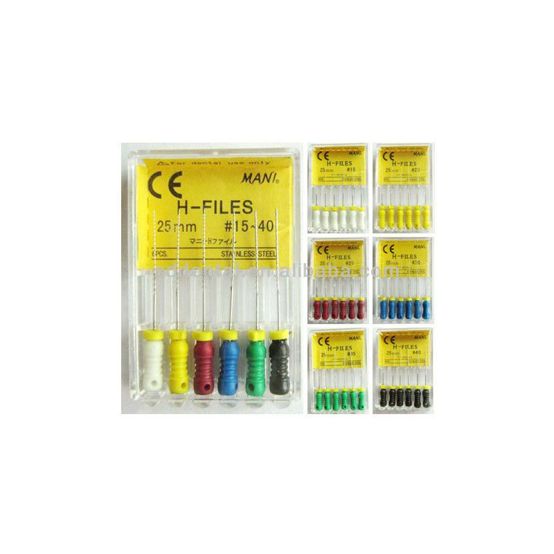 The Mani H-Files are essential for precise root canal cleaning and shaping. These stainless steel files are available in various sizes (#15 to #40) and are color-coded for easy identification. The 25mm length ensures optimal control and flexibility during the endodontic procedure. Ideal for dentists, these high-quality H-Files are designed to handle difficult canals with efficiency, ensuring smooth and accurate shaping. The set comes in a compact case for organized storage and easy access.