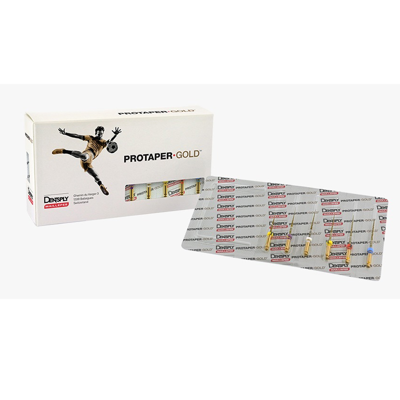 ProTaper Gold is a premium root canal shaping system by Dentsply Maillefer, designed for optimal performance and flexibility. The advanced gold alloy used in these files enhances their strength and flexibility, providing superior control and resistance to fracture. The system includes a range of tapered files that allow for efficient and precise cleaning and shaping of root canals. Trusted by dental professionals worldwide, ProTaper Gold delivers exceptional results in endodontic procedures, ensuring the highest standard of care for patients.