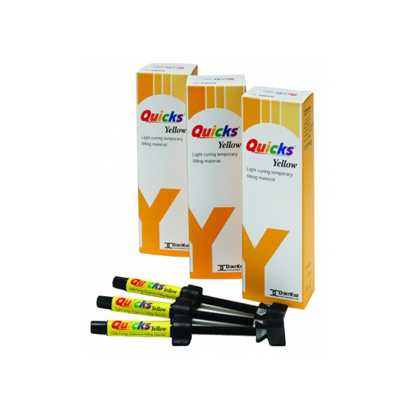 Quicks Yellow is a light-curing temporary filling material designed for quick and easy restorations. Ideal for use during interim treatments, it provides strong, durable fillings with a fast setting time. The material is easy to apply and mold, ensuring a perfect fit in the cavity. With excellent handling properties and superior bonding, Quicks Yellow is an excellent choice for temporary fillings that provide effective protection while awaiting permanent treatment. Available in convenient syringes for easy dispensing.