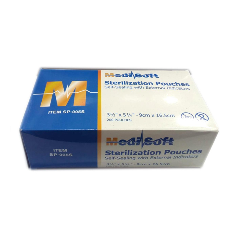 These Self-Sealing Sterilization Pouches are ideal for the safe and secure sterilization of dental instruments. Measuring 3½” x 5¼” (9cm x 16.5cm), each box contains 200 pouches with an external indicator to ensure proper sterilization. The easy-to-use self-sealing design ensures hygiene and safety, making them an essential item for dental practices.